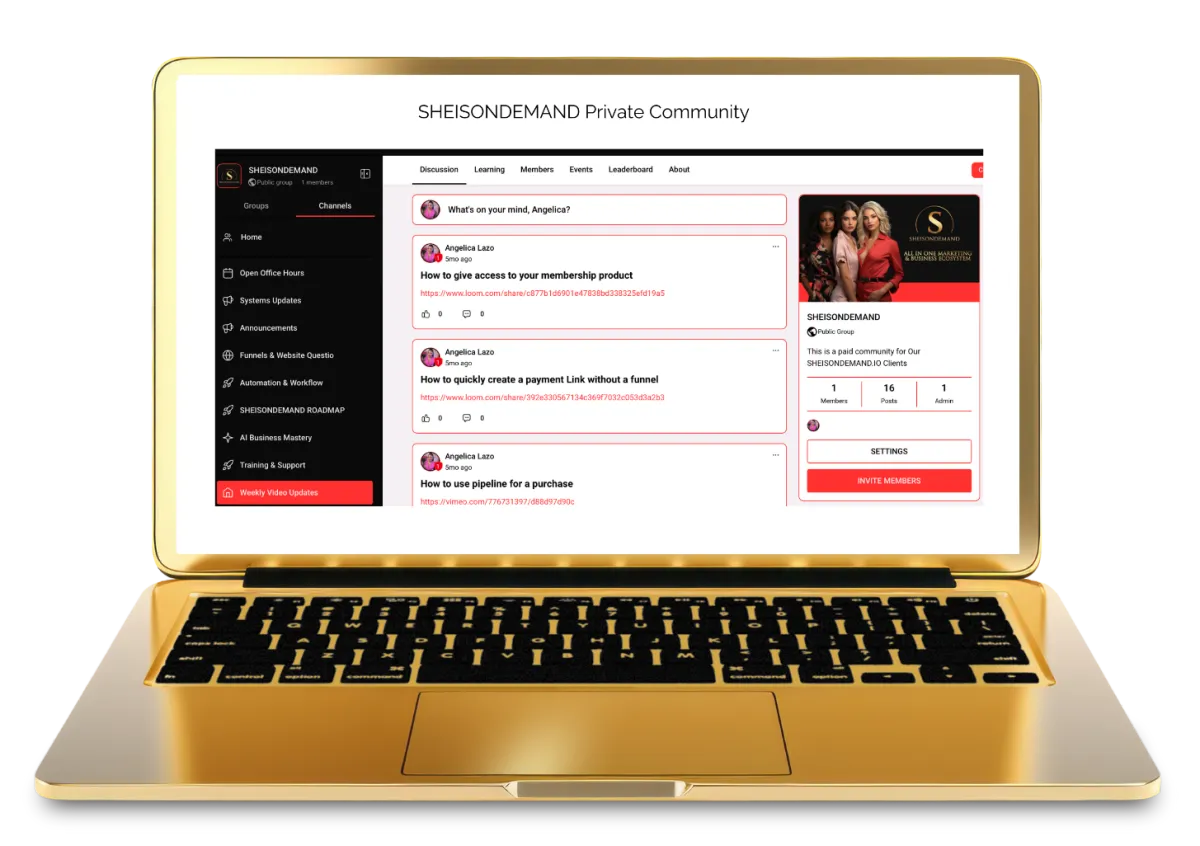 It is our pleasure to announce that we are powered on the backend by Go High Level, a well-funded, enterprise-level software product that has been developed, tested and used by over 10,000 users worldwide. Utilizing a platform that was already built, could be private-labeled and customized by us, we knew we would be able to save our customers exponentially, not need to deal with development funding ourselves, and continue to focus on organic growth and grassroots efforts.Our home was built on the foundation of High Level, which we consider as the first pour of the foundation.Everything that takes place above that foundation is what makes the difference. We have our own dedicated She is on demand Development, Training, and Support Teams that work tirelessly to create a one-of-a-kind platform. As a member, you will have access to our premium website and funnel designs, automations, marketing resources, workshops, trainings, and guest experts.