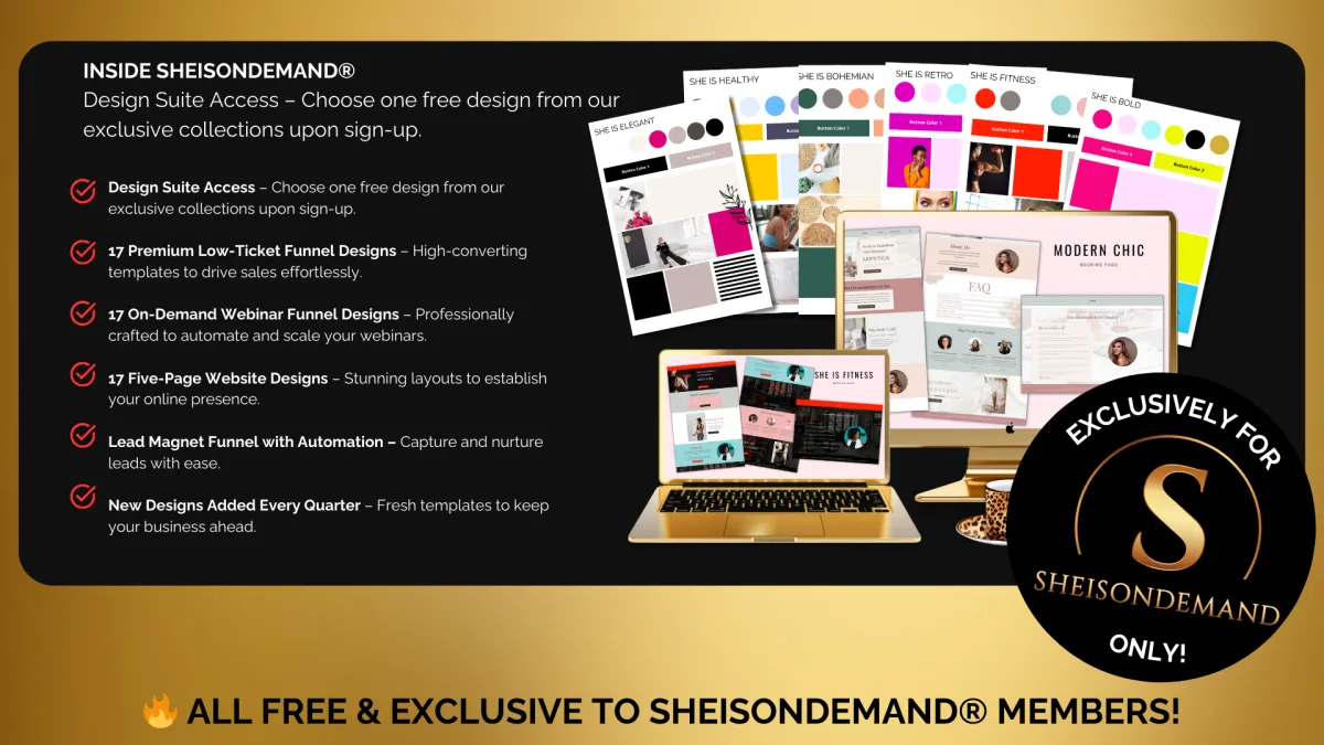 With Sheisondemand, you will have everything you need in a system to grow and scale your online business.